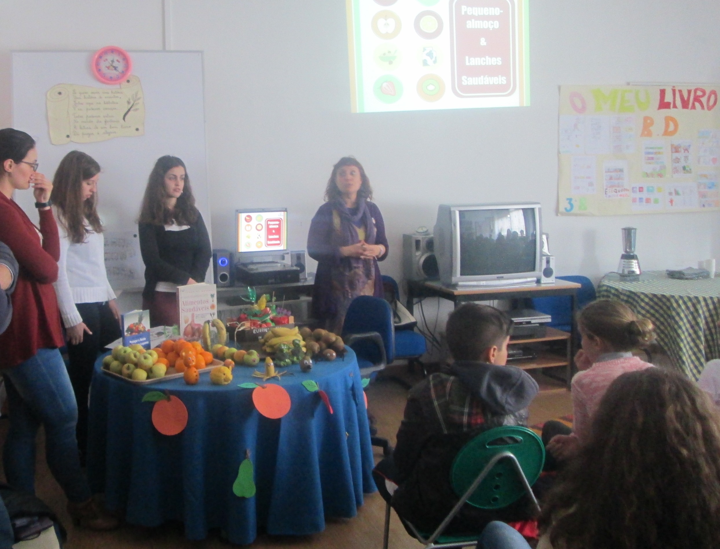 No dia 19 de abril celebrámos o nosso dia dos super alimentos (Superfoods Day), no âmbito do projeto eTwinning “EUROPE’s ABC of SUPERFOODS”. Este projeto conta com a participação de escolas de Portugal, França., Espanha, Itália, Grécia, Turquia e República Checa e subordina-se à temática “Alimentação Saudável”. A sessão decorreu na biblioteca da EB nº2 da Lousã e foi dinamizada por Vera Campos, Catarina Carvalho e Inês Costa, nutricionistas da Eurest, empresa responsável pelas refeições no refeitório da nossa escola. As nutricionistas apresentaram-nos várias propostas de pequenos-almoços e lanches saudáveis. No final preparámos e degustámos um batido de iogurte, morangos, banana e kiwi, de acordo com a receita proposta pelos nossos colegas da escola francesa. O batido estava muito bom e com esta sessão aprendemos a fazer uma alimentação mais saudável e a decifrar melhor a roda dos alimentos.